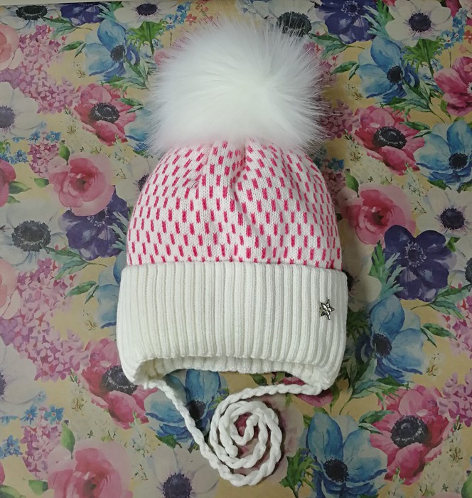 Шапка вязаная тонкая Розочки/бантик с бусинами 40-44