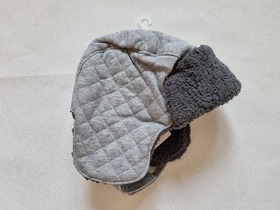 Новая шапка известного, американского бренда Gymboree, Quilted Trapper Hat. Завязка на липучке. Цвет: Heather Grey. Состав: 100% хлопок Джерси. Размер: 12-18М для мальчика 12-18 месяцев, ростом 78-84,5 см., окружность головы 45 см.