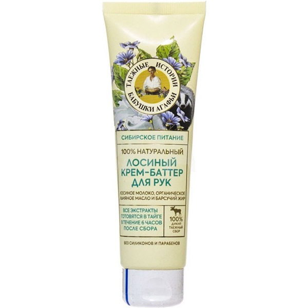 Состав: Aqua with infusions of Organic Moose Milk (органическое лосиное молоко), Organic Origanum Vulgare Flower/Leaf/Stem Extract (органический экстракт душицы), Organic Filipendula Ulmaria Extract (органический экстракт таволги), Organic Salix Alba Leaf Extract (органический экстракт белой ивы), Organic Calluna Vulgaris Flower Extract (органический экстракт белого вереска), Organic Dasiphora Fruticosa Extract (органический экстракт лапчатки), Organic Inula Helenium Extract (органический экстракт девясила), Organic Bidens Tripartita Flower/Leaf/Stem Extract (органический экстракт череды), Organic Scutellaria Baicalensis Root Extract (органический экстракт таежного шлемника), Organic Achillea Asiatica Extract (органический экстракт тысячелистника); Organic Linum Usitatissimum Seed Oil (органическое масло льна), Meles Meles Leptorynchus Oil (барсучий жир), Glycerin (растительный глицерин), Polyglyceryl-3 Diisostearate (безопасный ПАВ на основе глицерина и кокосового масла), Organic Amaranthus Spinosus Seed Oil (органическое масло амаранта), Tocopherol (витамин Е), Benzyl Alcohol (консервант из масел жасмина и гвоздики).