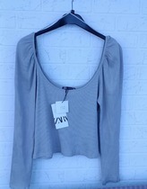 Укороченный Топ ZARA с рукавами-фонариками, размер L, новый с биркой. Изготовлен из хлопка и эластана. Цвет пастельно оливковый универсален и легко сочетается с разными элементами гардероба. Подойдёт на большую грудь. Длина изделия 30 см, ширина по подмышкам 40 см, длина рукава 67 см. Очень хорошо тянется.