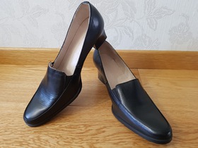 Новые форменные туфли. Лёгкие и удобные. Оденьте и будете довольны всю смену. Состав: натуральная кожа внутри и снаружи. Цвет: черный. Размер: наш 38, длина по стельке 26 см.