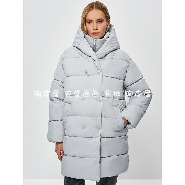 — Zarina Утепленная куртка средней длины с капюшоном и воротником-стойкой